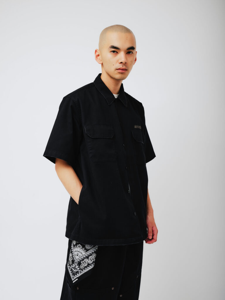 Inspired by Dickies classic 1574 work shirt, the Dickies x Atmos Japan Utility Work Shirt reimagines a timeless silhouette with a modern twist. It features updated tailoring, “atmosphere” embroidery on the left chest, and a Dickies logo at the hem. An elevated locker loop added on the back, coming in hook with “Dickies” engraved. The raw, unfinished bottom edge adds a bold street-style statement to this elevated workwear piece.